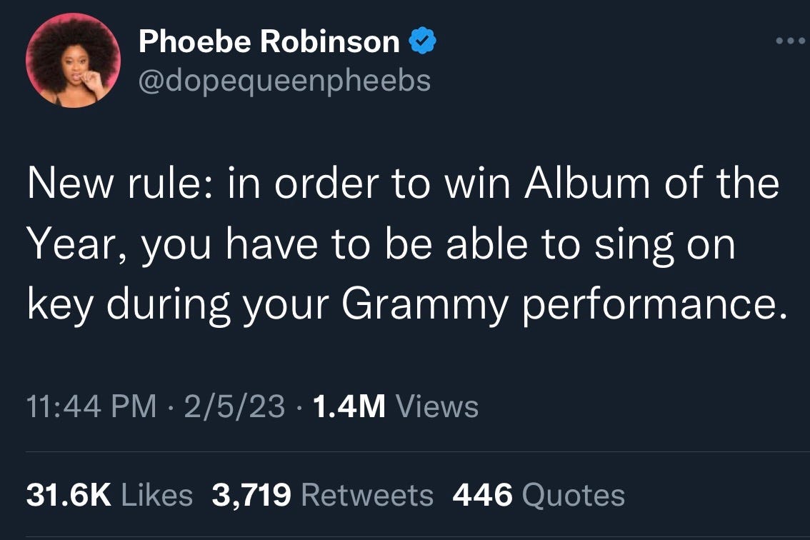 Let’s be honest: we were all watching The Last of Us instead of the Grammys last night (or, if you’re me, doing lots and lots of school work). Smart of HBO to take a break next week since RiRi (our lord and savior) shall return. ANYWAY, let’s check out a very unexciting, unsurprising night with the Grammys, the winners, the losers, and most importantly, what we got right. Smash that subscribe button, coward.